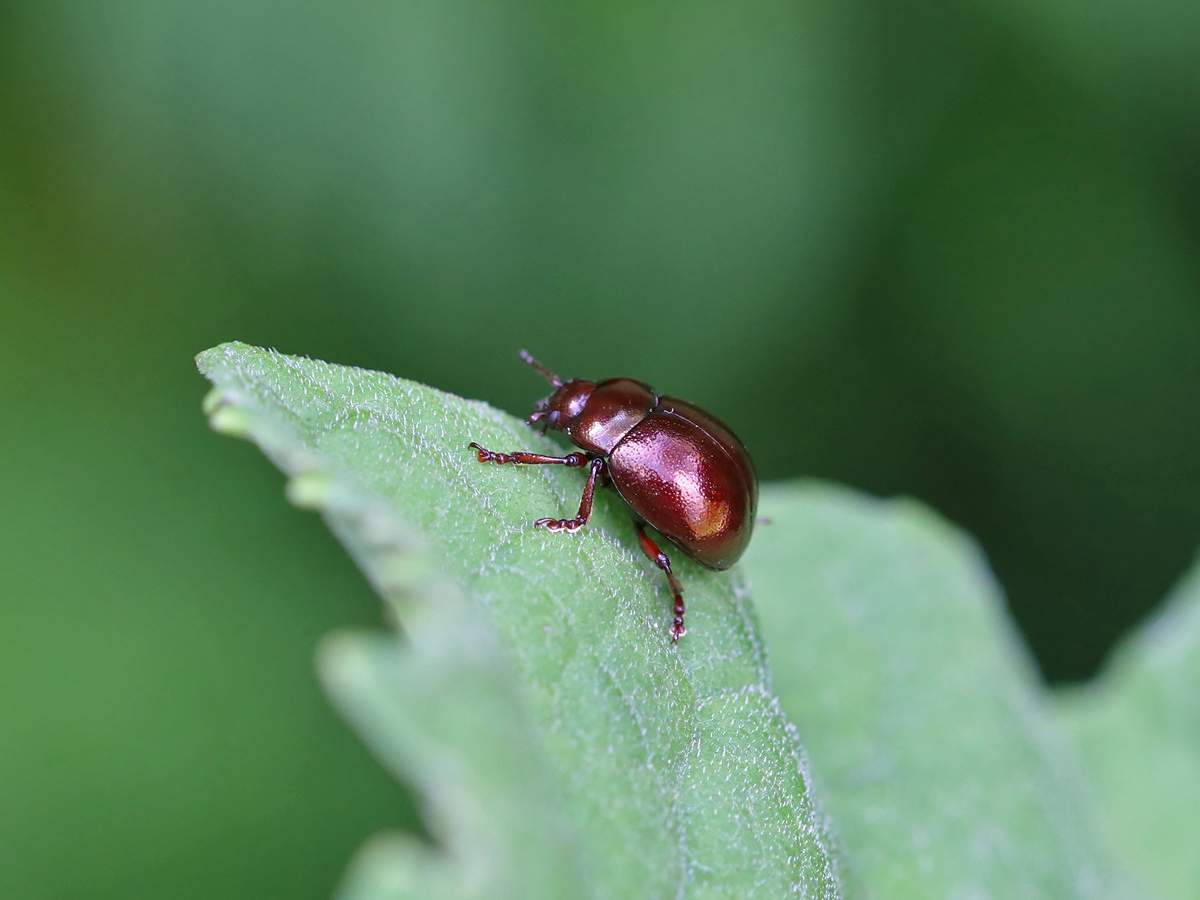 Der Rote Minzen-Blattkäfer (Chrysolina staphylaea) ist vor allem an Minze (Mentha) oder anderen Lippenblütlern zu finden. Er ist wie andere Blattkäfer rundlich geformt und verfügt über eine rotbraune Färbung sowie eine feine Punktierung der Flügeldecken.