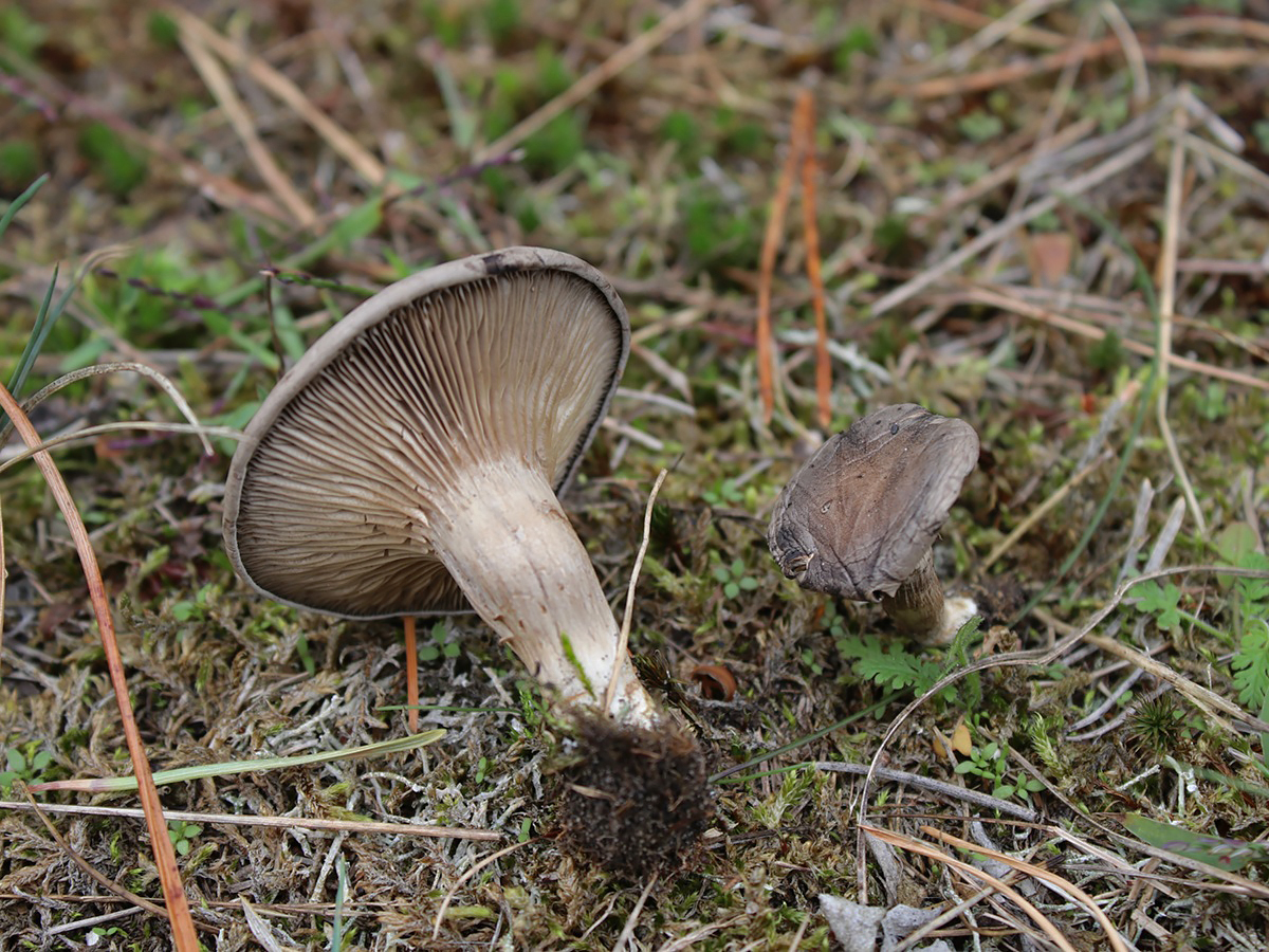 Der Bereifter Tellerling (Clitocella popinalis) ist eine rinnig bereifte grau gefärbte Pilzart, die stark mehlig riecht und deutlich bitter schmeckt. Typisch ist darüber hinaus das langsame Grauen bzw. Schwärzen der Lamellen im Alter bzw. bei Verletzung.
