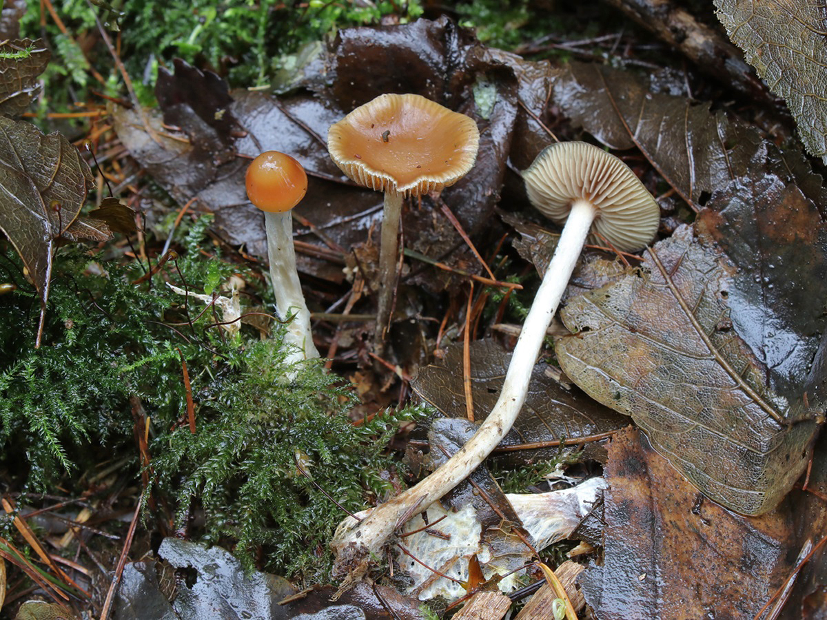 Der Blauende Kahlkopf (Psilocybe cyanescens) ist eine mittelhäufige Art, die auf Pflanzenresten oder in Parks und Friedhöfen auf Rindenmulch wächst. Typisch sind neben der Hygrophanität der Hüte und den weißen Stielen auch die Blaufärbung der Hutränder und Stiele bei Druck oder Trocknen, die auf das vorhandene halluzinogene Psilocybin hinweisen.