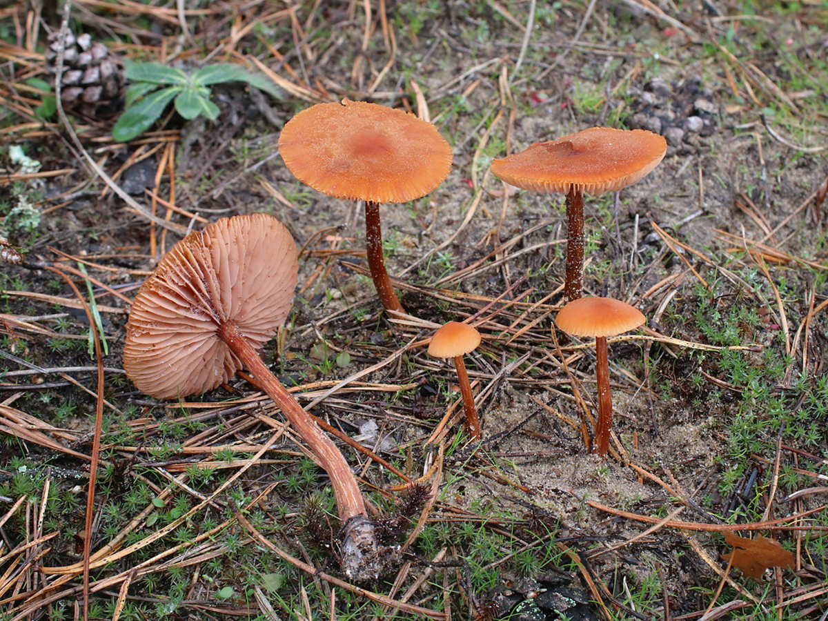 Der Braunrote Lacktrichterling (Laccaria proxima) kommt an verschiedenen Standorten wie Nadelwäldern, aber auch mageren Heide- oder Brachflächen vor. Typisch sind die feinschuppige Hutoberfläche und die deutlich gerieften Stiele sowie das Fehlen von Violetttönen in der Stielbasis (vgl. Zweifarbiger Lacktrichterling – Laccaria bicolor).