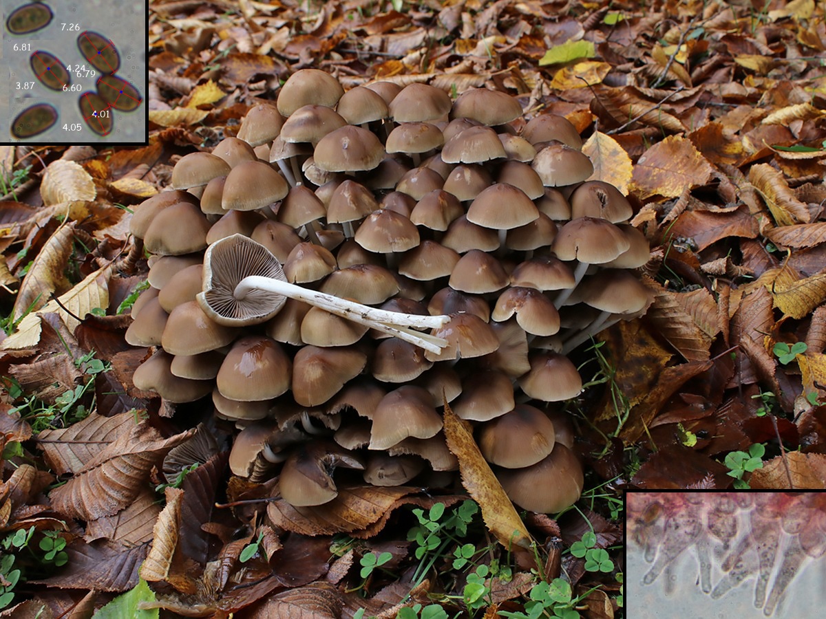 Der Büschelige Faserling (Psathyrella multipedata) ist eine häufige Art, die durch den typischen büscheligen Wuchs der durchaus über einhundert kleinhütigen Fruchtkörper eindeutig erkennbar ist. Mikroskopisch auffällig sind die langhalsigen flaschenförmigen Zystiden.
