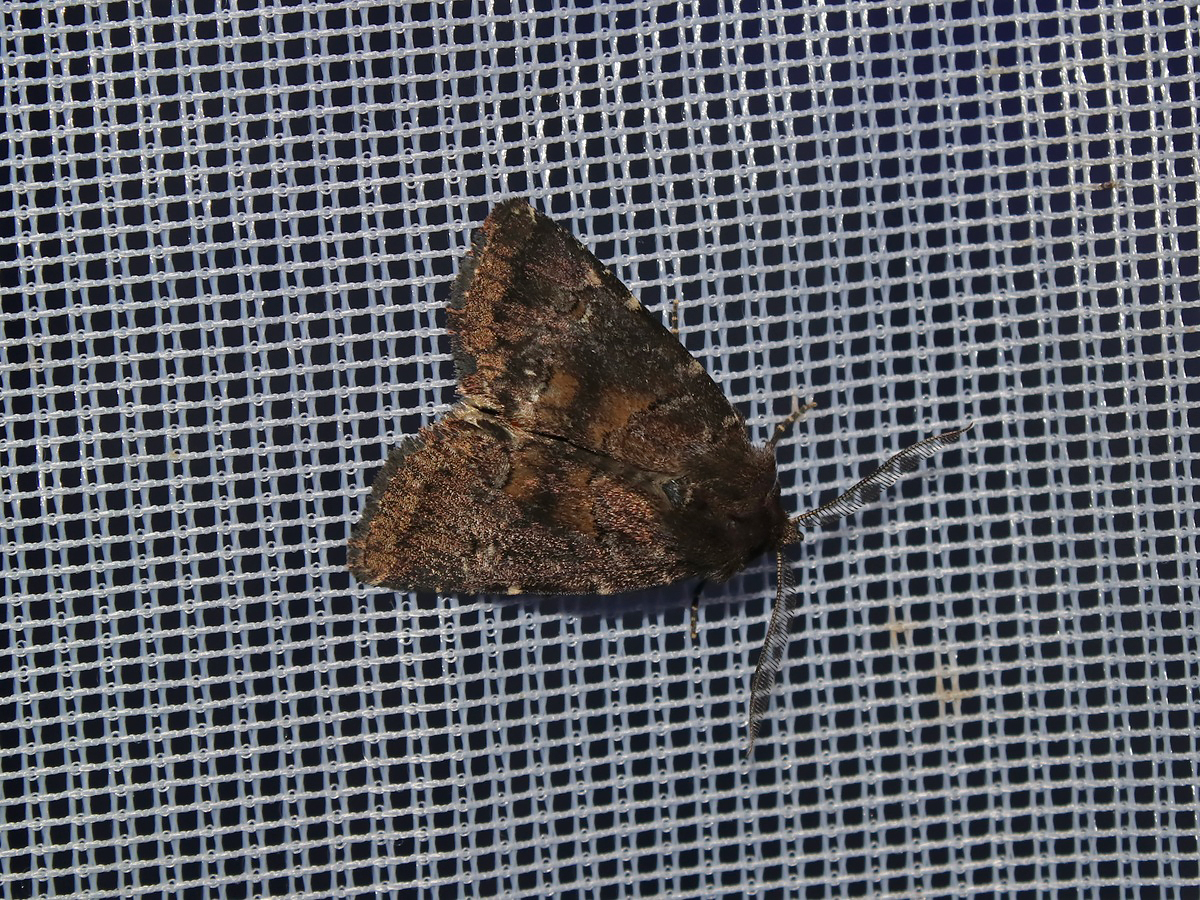 Die Dunkle Waldschatteneule (Charanyca ferruginea) ist hellbräunlich bis dunkelbraun gefärbt mit undeutlichen Querlinien und helleren Flecken am Außenrand der Flügel. Die Fühler der Männchen dieser weit verbreiteten Art sind deutlich gekämmt.