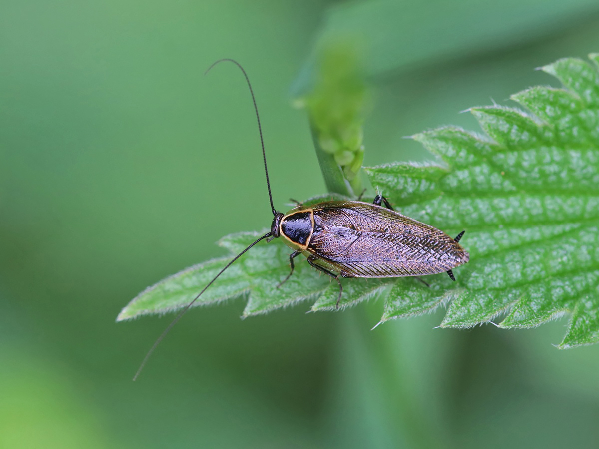 Die Echte Waldschabe (Ectobius sylvestris) ist eine sehr häufige Art, die sich durch den schwärzlichen Rückenschild mit hellgelber Umrandung auszeichnet. Recht ähnlich gezeichnet ist die ebenfalls häufige Gemeine Waldschabe (Ectobius lapponicus).