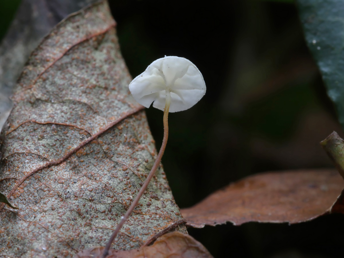 Der Efeublatt-Schwindling (Marasmius epiphylloides) wächst auf alten, feucht liegenden Blättern von Efeu (Hedera helix). Er ist wohl nicht selten, aber schwierig zu entdecken. Recht typisch sind neben dem Substrat die stark reduzierten Lamellen sowie der Farbverlauf am Stiel.
