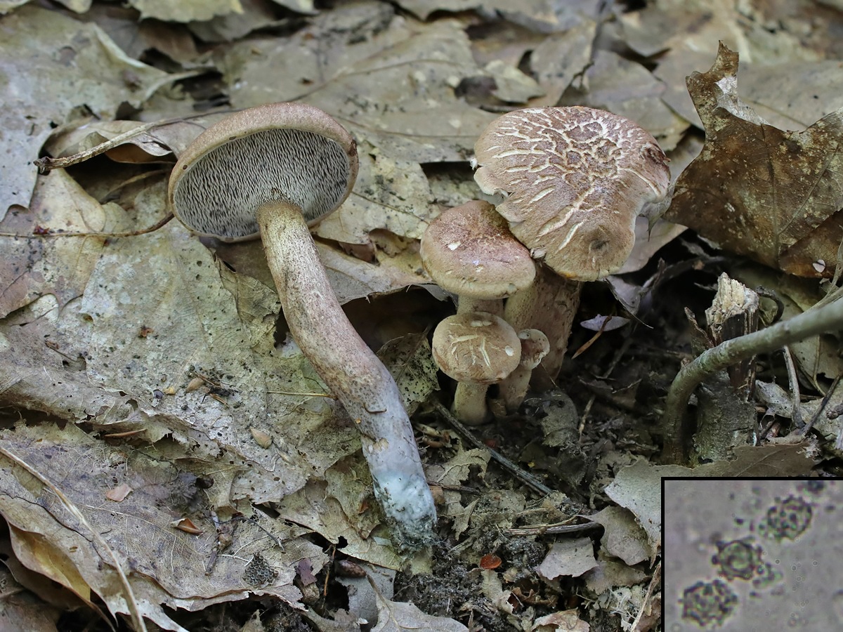 Der Gallen-Stacheling (Sarcodon scabrosus) ist eine eher seltene Stachelingsart, die sich u. a. durch den stark bitteren bis scharfen Geschmack sowie die Blau- bis Grüntöne in der Stielbasis von den recht ähnlichen Arten wie dem Kiefern-Habichtspilz (Sarcodon squamosus) und dem Fichten-Habichtspilz (Sarcodon imbricatus) unterscheidet.
