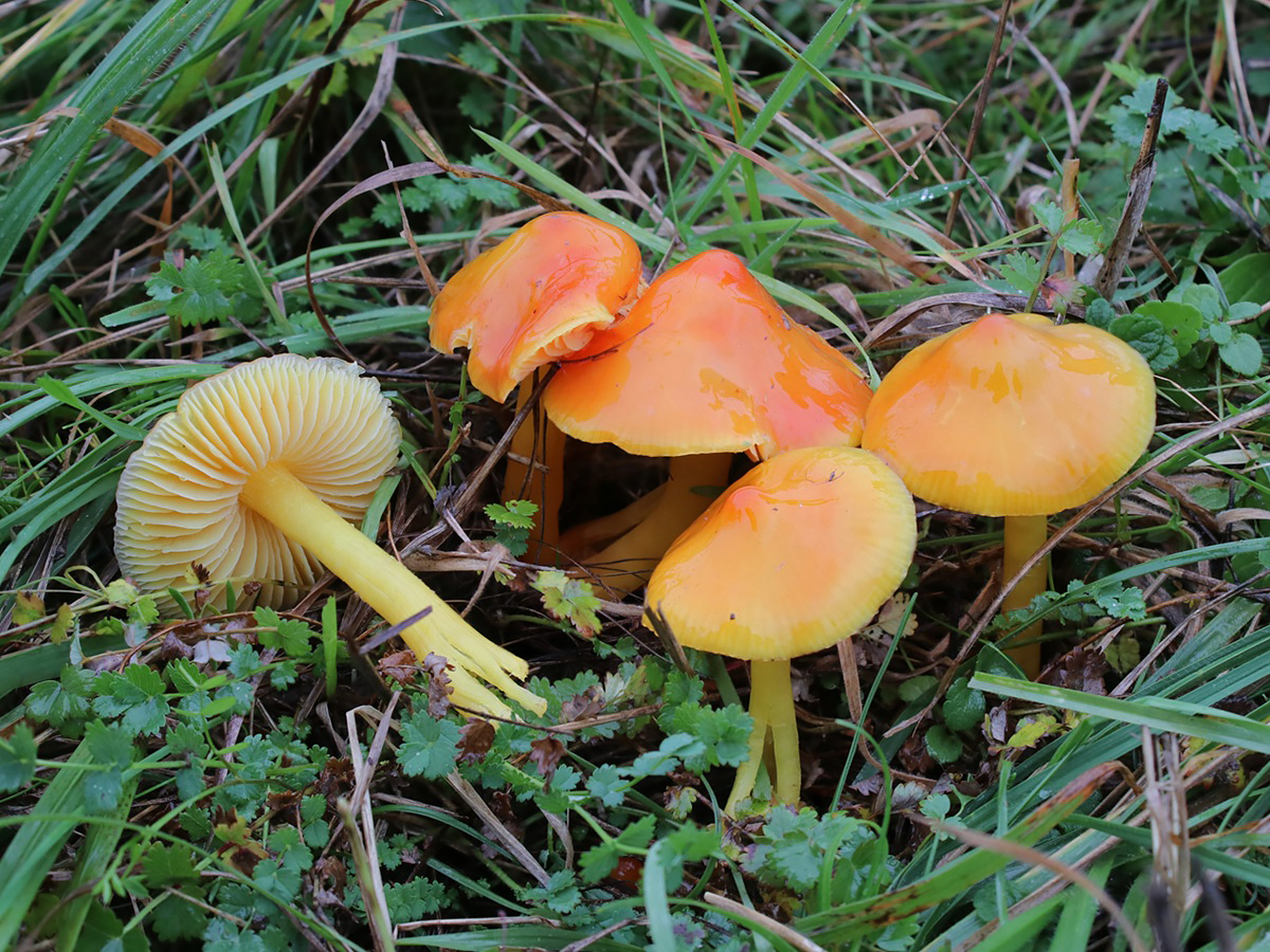 Der Glänzende Orange-Saftling (Hygrocybe aurantiosplendens) ist ein vom Aussterben bedrohter (RL1) orangegefärbter Saftling, der einen schmierigen Hut und trockenen Stiel aufweist. Er könnte mit hell gefärbten Exemplaren des Granatroten Saftling (Hygrocybe punicea) verwechselt werden, der jedoch einen längsfaserigen Stiel aufweist.