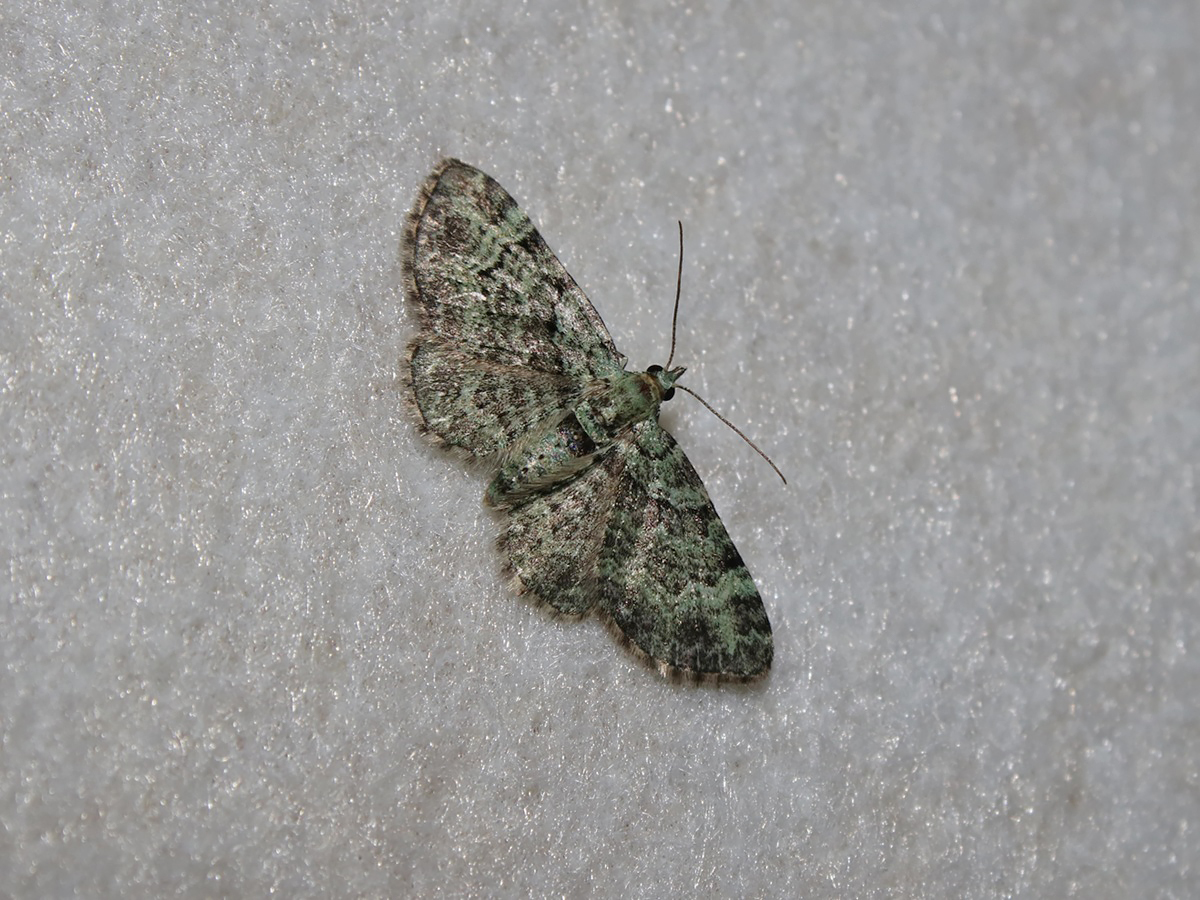 Der Graugrüne Apfelblütenspanner (Pasiphila rectangulata) ist eine grünlich gefärbte Art mit vielen, teilweise undeutlichen dunkleren Querbinden. Die Raupen der Art leben in Blüten von Obstbäumen, vor allem von Apfelbäumen (Malus). Der ähnlich gefärbte Grüne Blütenspanner (Chloroclystis v-ata) unterscheidet sich durch das auf den Flügeln erkennbaren V.
