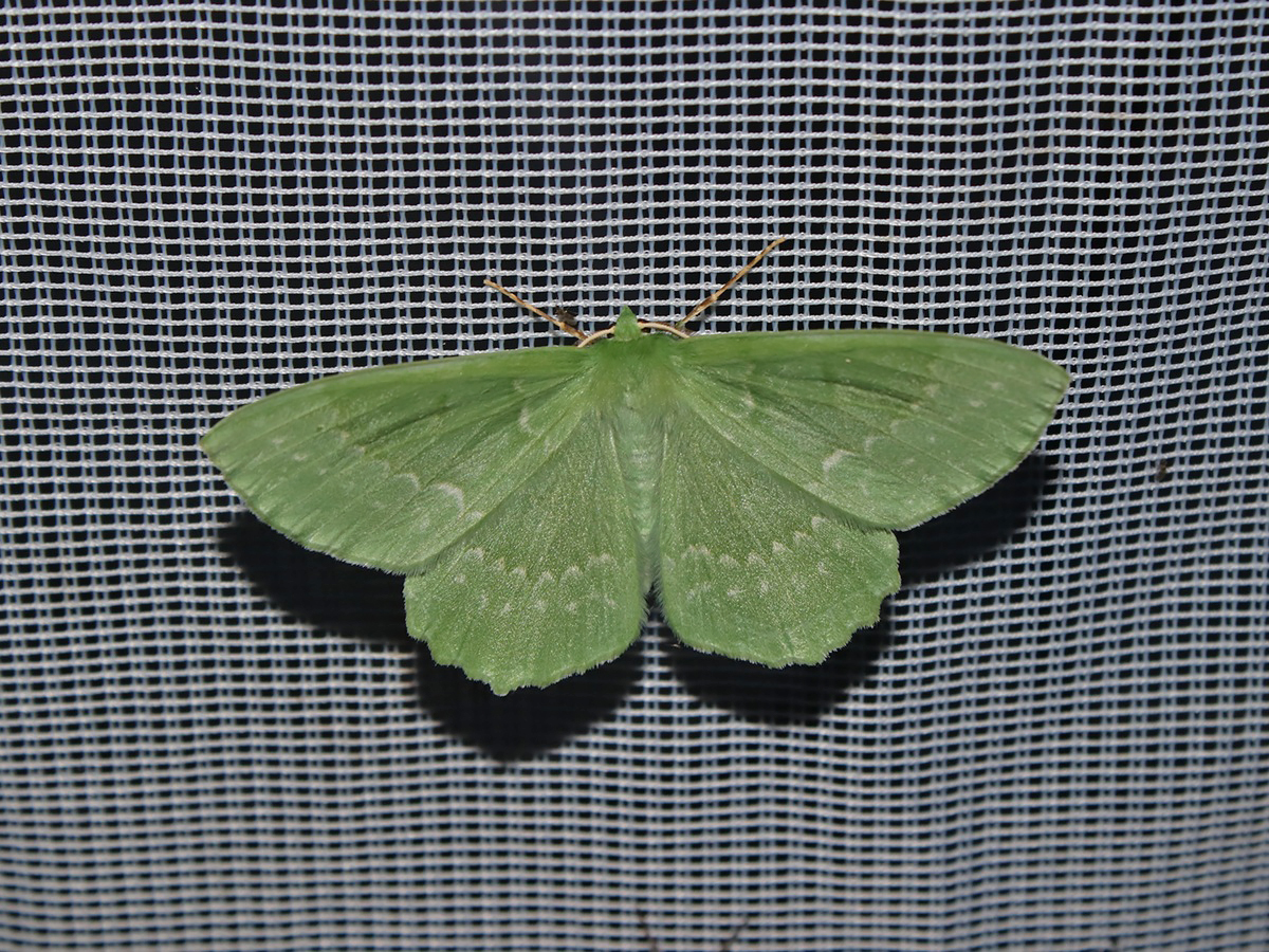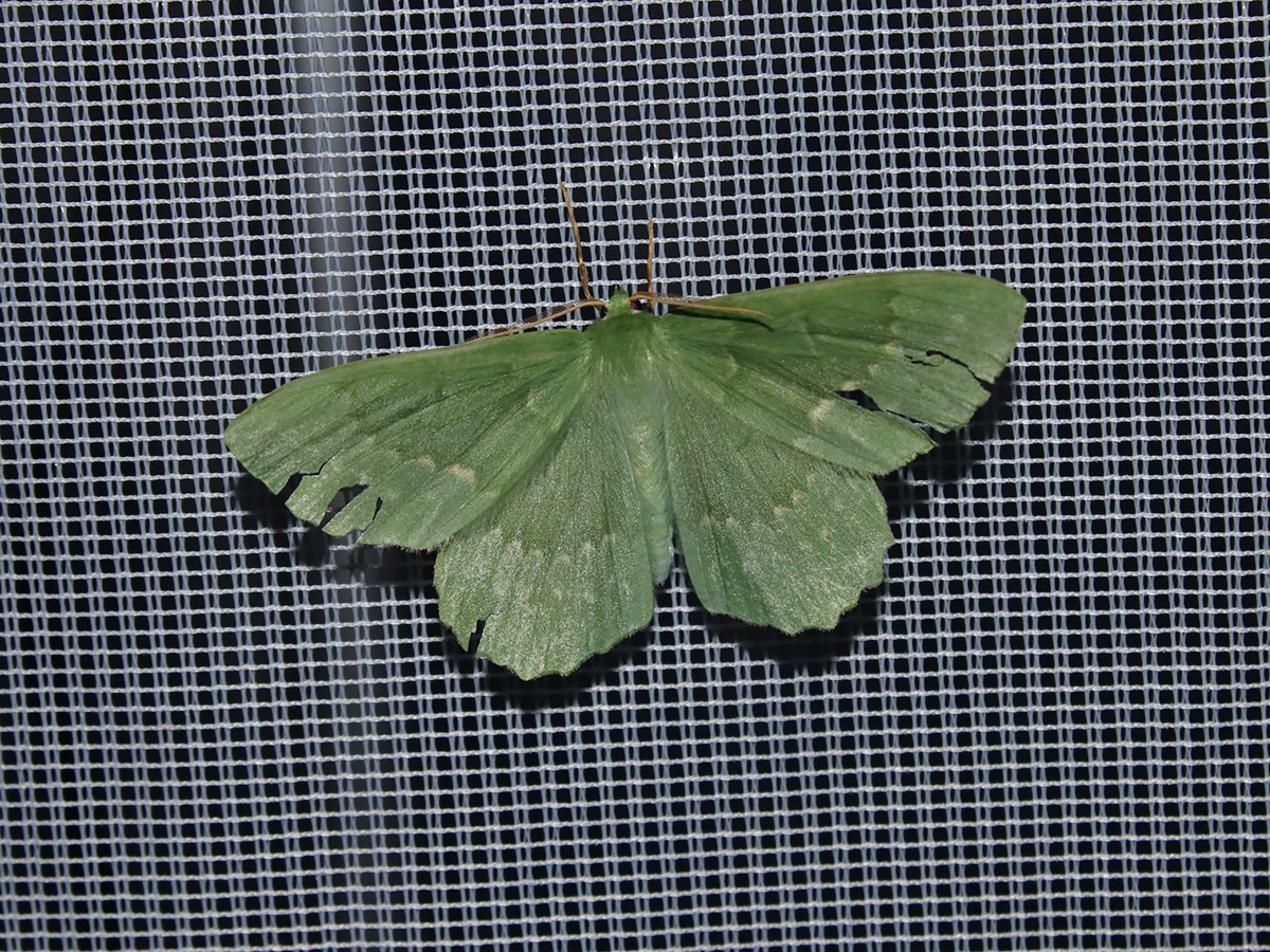 Das Grüne Blatt (Geometra papilionaria) ist ein recht großer Nachtfalter mit einer Spannweite von bis zu 65 mm und es zeichnet sich neben der mitunter kräftig grünlichen Färbung durch die undeutlicheren zackigen Querlinien aus. Die recht häufige Art ist bei genauerem Blick unverwechselbar.