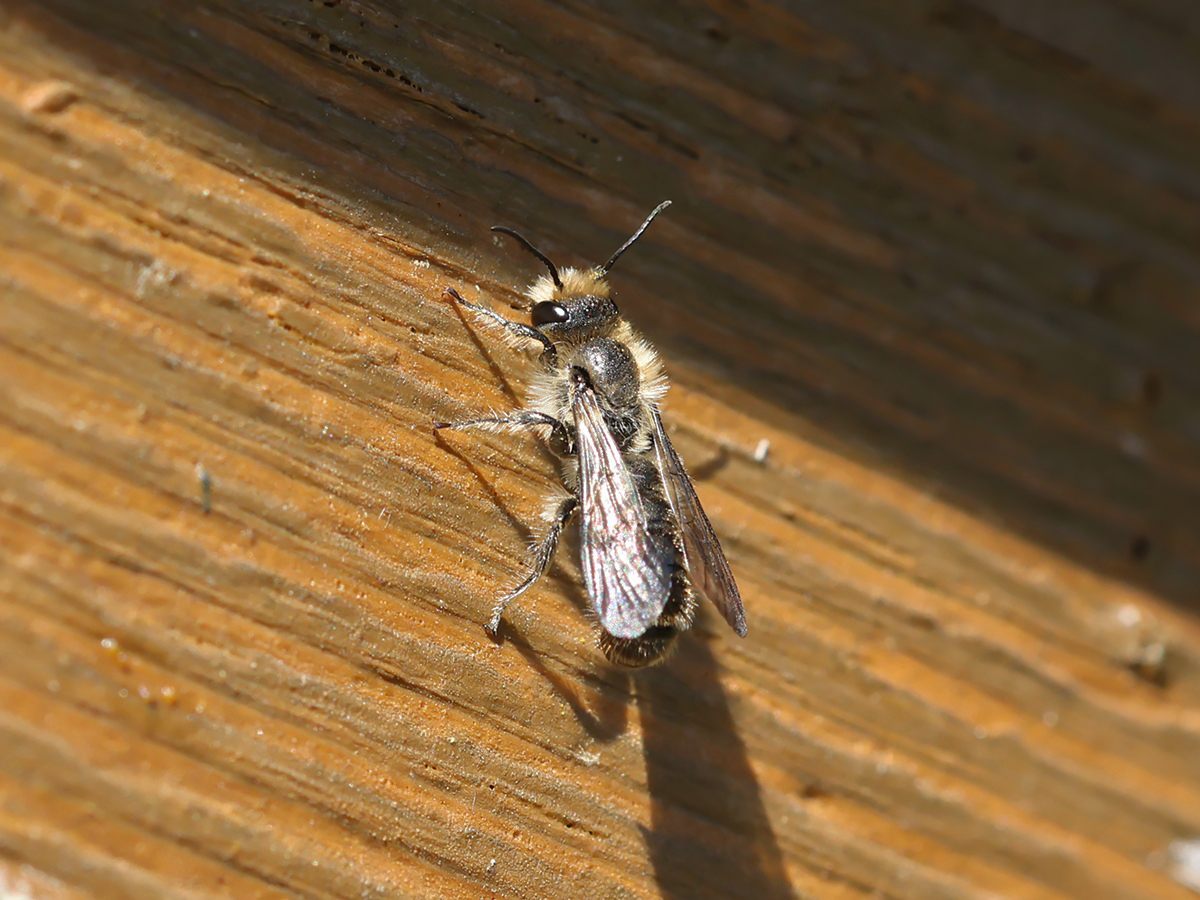 Die Hahnenfuß-Scherenbiene (Chelostoma florisomne) ist eine häufige solitäre Wildbiene, die vor allem von Ende April bis Ende Juni u. a. an Insektenhotels zu beobachten ist. Die langgezogene schmale Biene mit weißlicher Bauchbürste ist oligolektisch an Hahnenfuß (Ranunculus) gebunden.