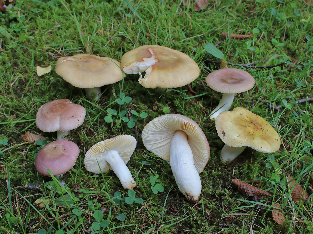 Der Hainbuchen-Täubling (Russula carpini) wächst ausschließlich in Symbiose mit Hainbuchen (Carpinus betulus). Es handelt sich um eine mittelgroße Art mit sehr variabler Hutfarbe und intensiv gelbem Sporenpulver, die auf basenreichen Böden wie Kalkböden wächst.