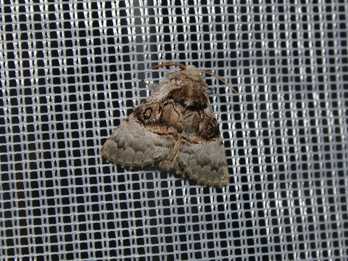 Die Haseleule (Colocasia coryli) weist auf den Flügeln eine scharfe Trennung zwischen hellgrauer und dunkelbräunlicher Färbung auf. Es handelt sich um eine häufige und weit verbreitete Art, deren Raupen an verschiedenen Laubbäumen fressen.