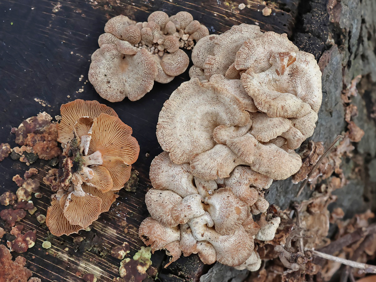 Der Herbe Zwergknäueling (Panellus stipticus) ist eine häufige Pilzart, die vor allem im Winter auf totem Laubholz zu finden ist. Typisch sind die bräunliche Farbe, die aufreißende Huthaut, der stark abgesetzte Stiel sowie die Anastomosen zwischen den engstehenden Lamellen. Er ist bräunlicher gefärbt als der Milde Zwergknäueling (Panellus mitis) und schmeckt, je nach Exemplar, kratzend bis scharf statt mild.