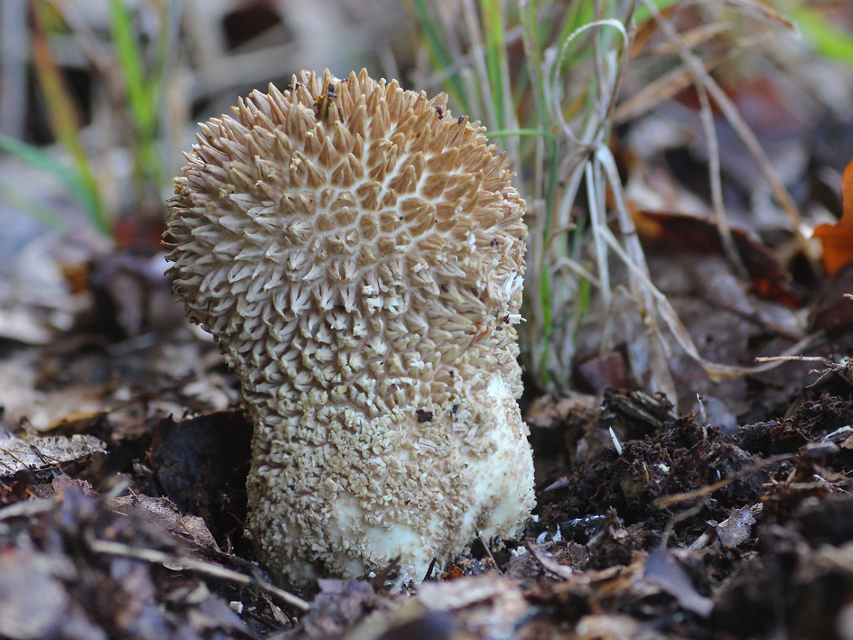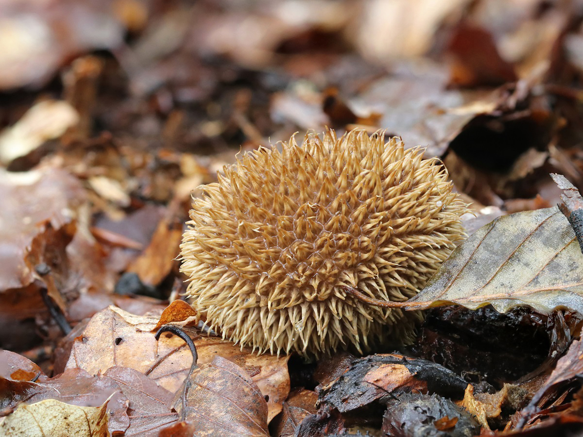 Der Igel-Stäubling (Lycoperdon echinatum) fällt durch ihre kräftigen Schuppen auf, die beim Abfallen ein Netz hinterlassen. Im jungen Stadium ist der Igel-Stäubling eher weißlich, färbt sich aber im Alter ins Braune. Diese nicht sehr häufige Art wächst auf Kalkboden und bevorzugt Buchenwälder.