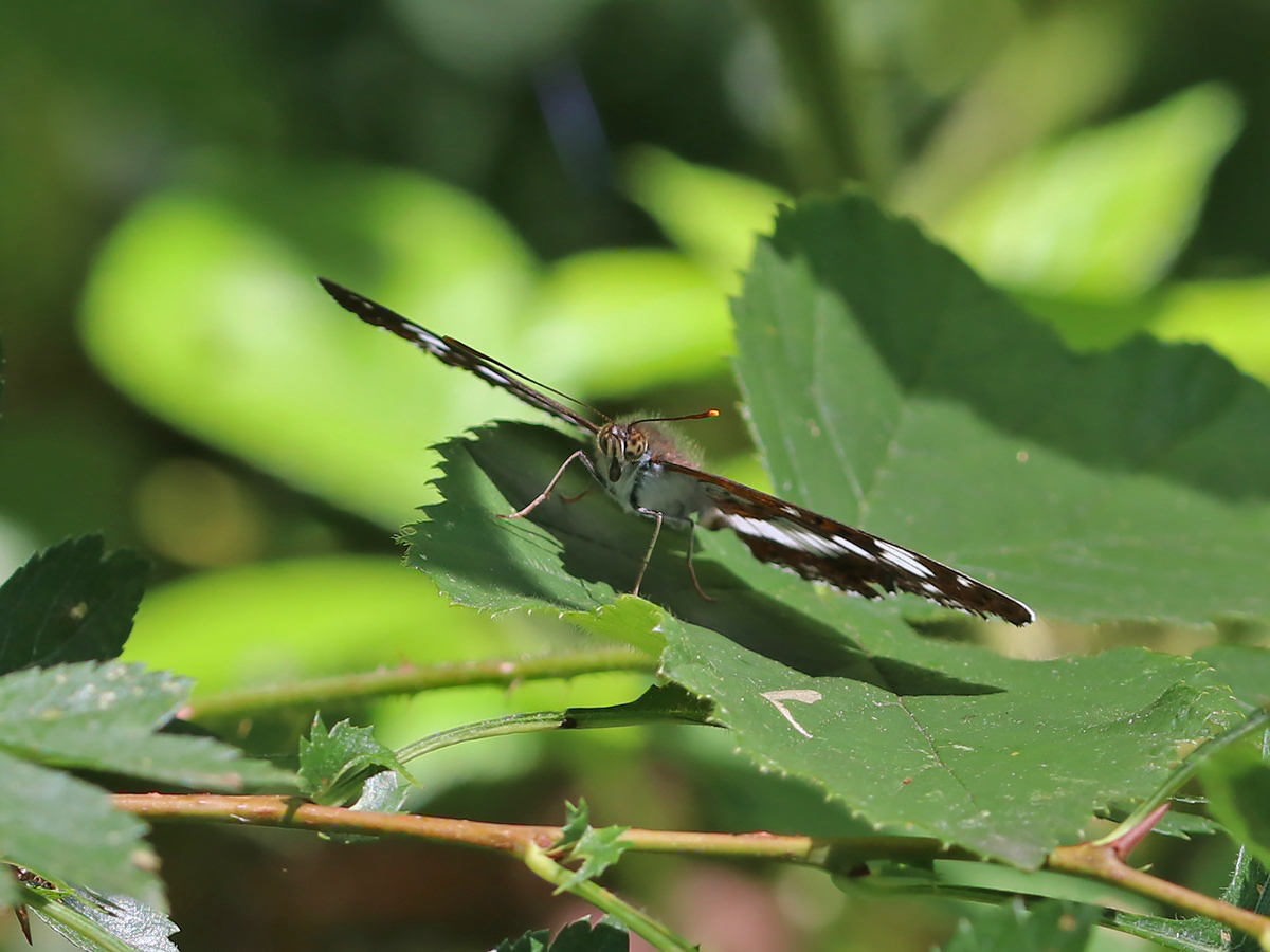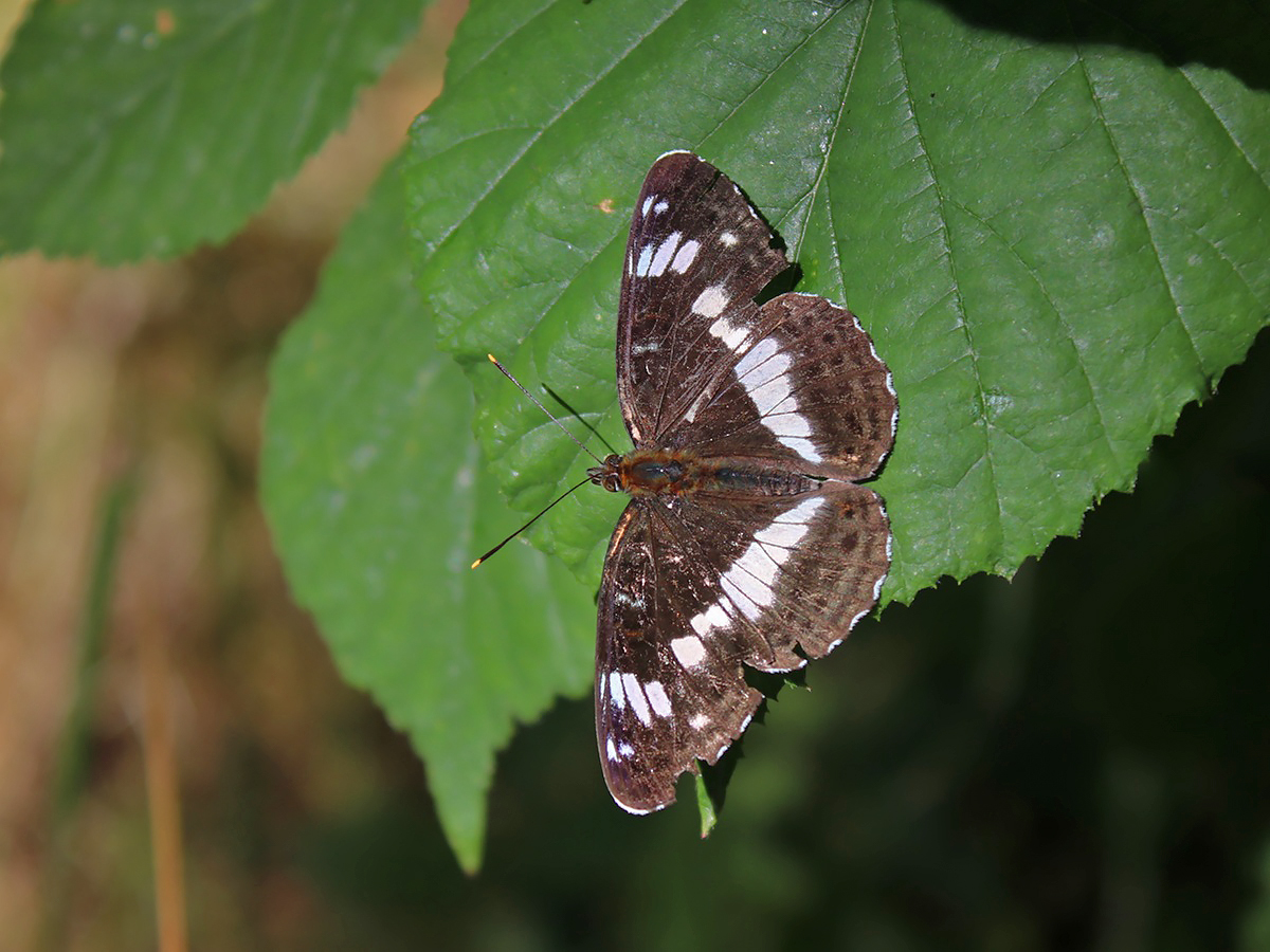 Der Kleine Eisvogel (Limenitis camilla) ist ein recht großer Tagfalter mit schwarzbrauner Färbung und weißer Flügelbinde auf der Oberseite. Die Art kommt vor allem in feuchten Wäldern sowie höheren Lagen vor. Das Landkärtchen (Araschnia levana) in der Sommerform kann auf den ersten Blick ähnlich aussehen, ist aber kleiner und hat auch Orangetöne auf der Flügeloberseite.