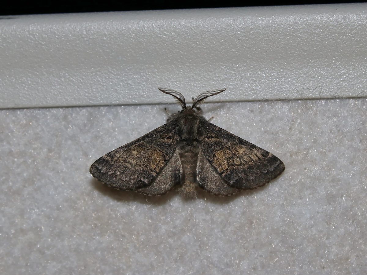 Der Pappelauen-Zahnspinner (Gluphisia crenata) ist ein eher unauffällig gezeichneter größerer Nachtfalter, der diverse dunklere Querbänder aufweist. Die Raupen dieser Art fressen vor allem an Pappeln (Populus).
