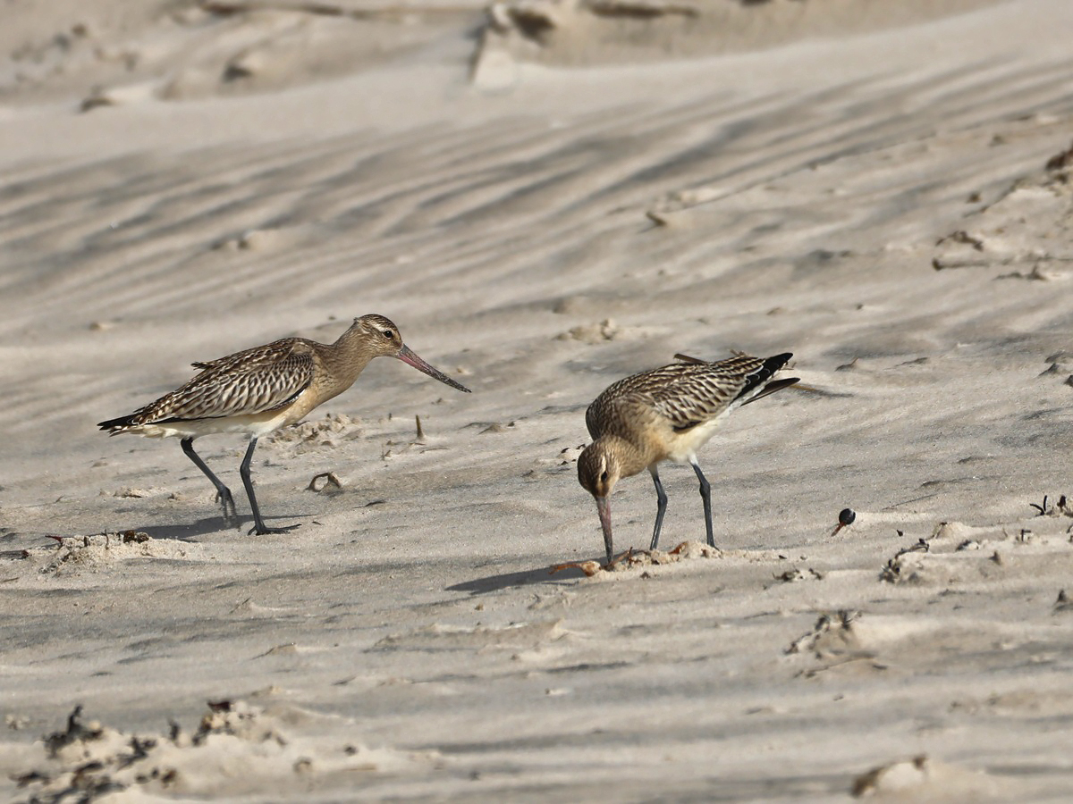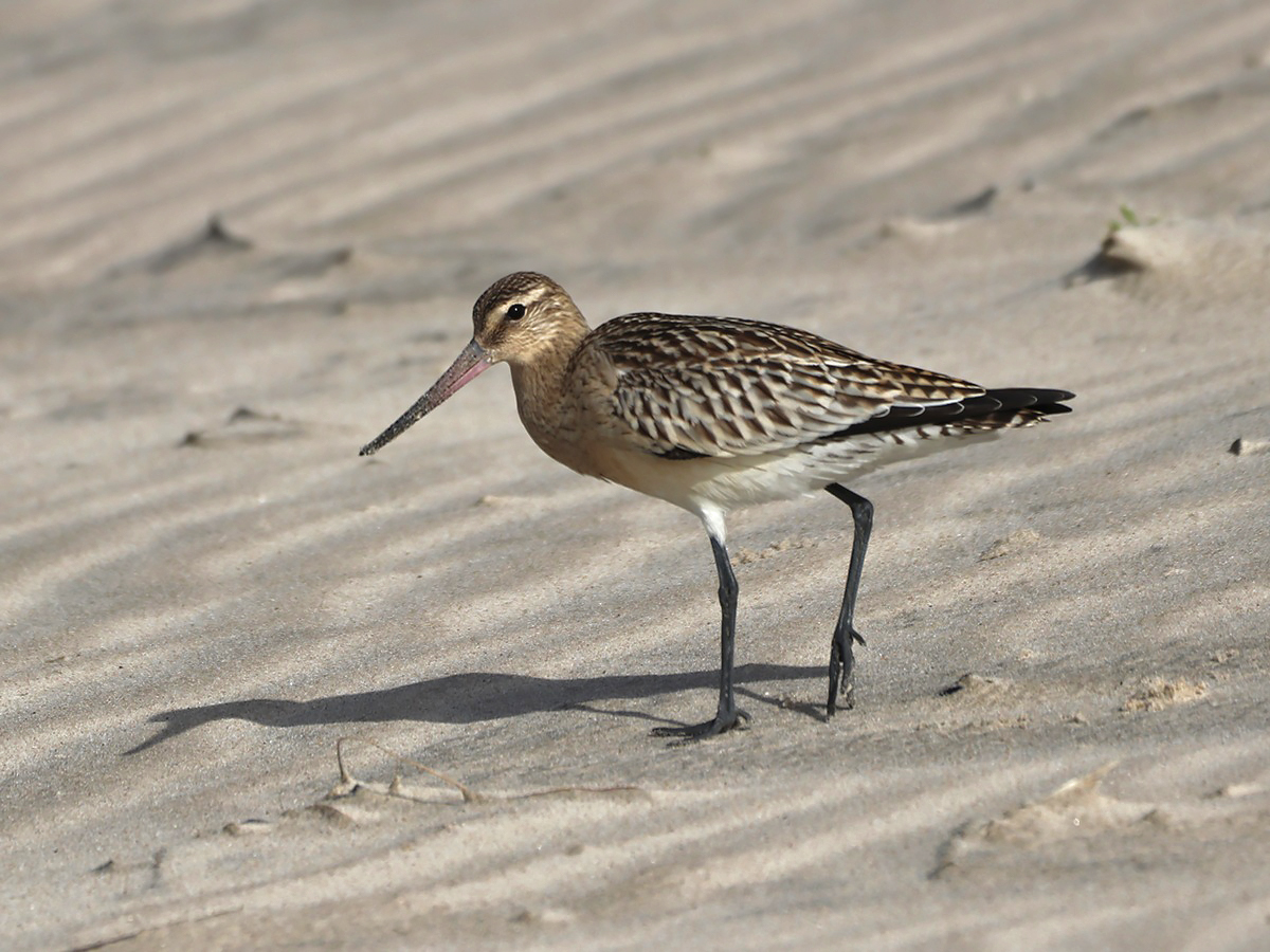 Die Pfuhlschnepfe (Limosa lapponica) ist in Deutschland als Durchzügler und Wintergast zu beobachten. Im Vergleich zur ähnlichen Uferschnepfe (Limosa limosa) hat sie kürzere Beine und einen kürzeren aufgeworfenen Schnabel.