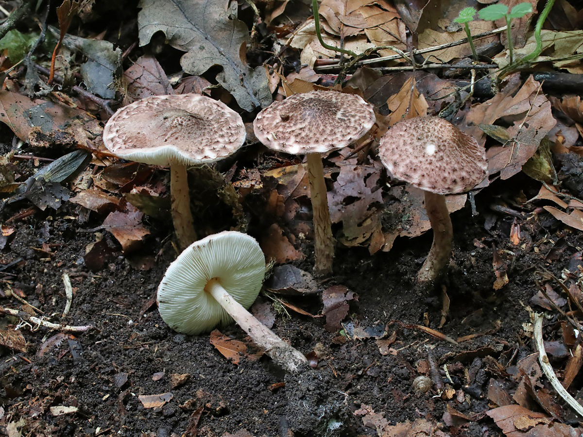Der Purpurbraune Schirmling (Lepiota fuscovinacea) ist eine mittelhäufige Pilzart, die sich durch die groben violettlichen Hutschuppen sowie den wollig-filzigen Stiel auszeichnet.