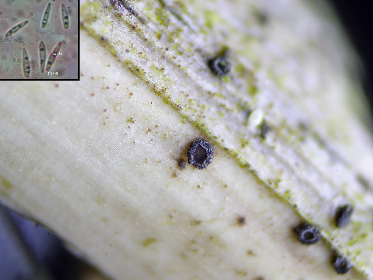 Pyrenopeziza pulveracea ist ein Schlauchpilz, der an der Basis von alten Stängeln von Filipendula ulmaria sowie seltener auch anderen Pflanzen wächst. Die Art bildet Fruchtkörper unter 1 mm und lässt sich durch die Sporengröße von ähnlichen Arten trennen.