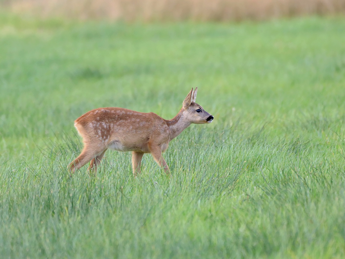 Das Reh (Capreolus capreolus) ist die häufigste europäische Hirschart und gleichzeitig die kleinste. In der Dämmerung verlassen sie häufig die Wälder und fressen dann auf Wiesen und Feldern. Tagsüber leben die Rehe in der Regel eher versteckt und Begegnungen im Wald sind eher zufällig. Selten kann man liegende Kitze im Wald entdecken, die sich dann still und unauffällig verhalten, um nicht wahrgenommen zu werden.