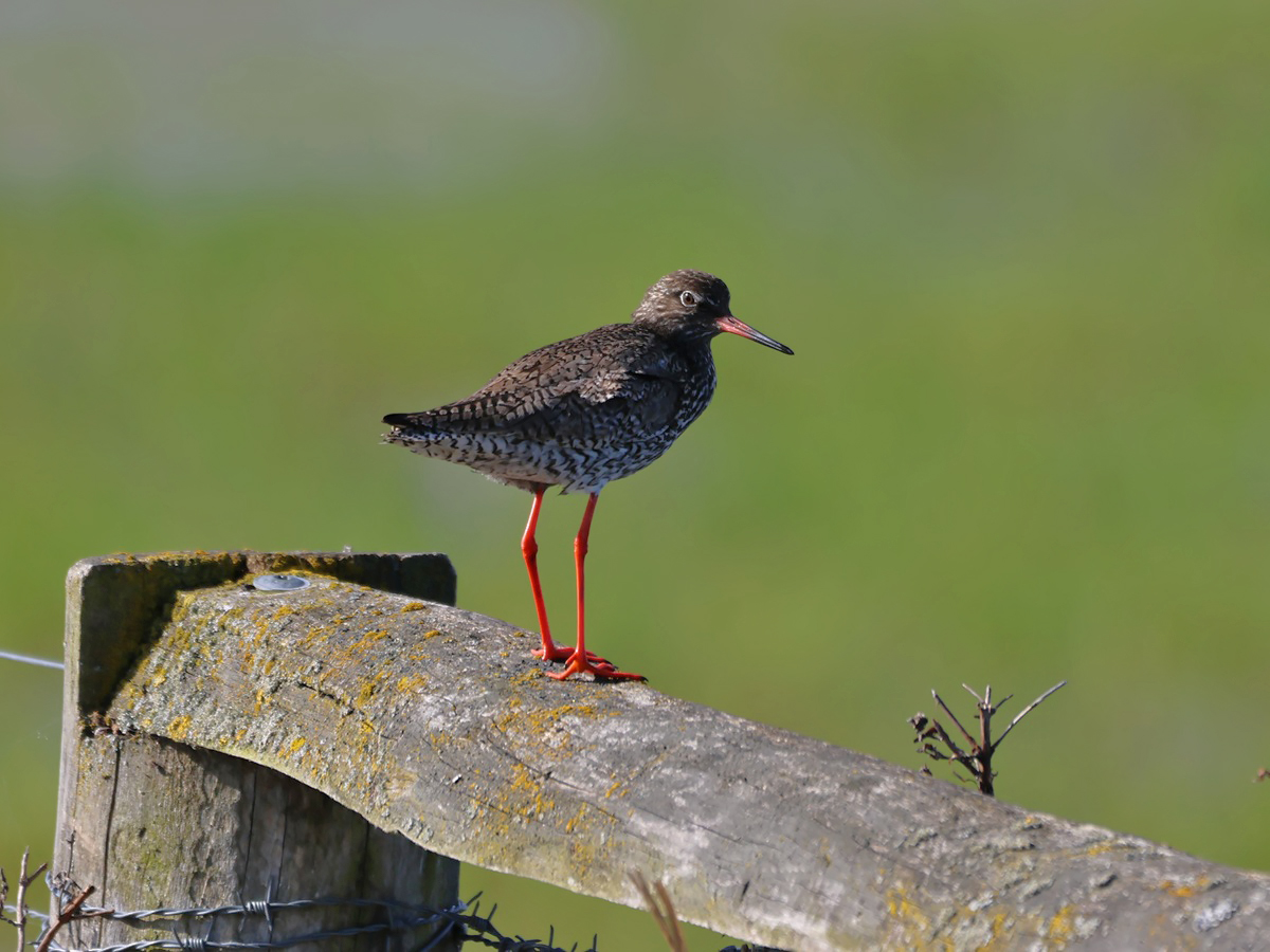 Der langbeinige Rotschenkel (Tringa totanus) fällt durch die kräftig rot gefärbten Beine und Schnabel auf. Die in Deutschland recht verbreitete mittelgroße Art brütet sowohl in Küstennähe als auch in Feucht- und Sumpfgebieten über Deutschland verteilt.