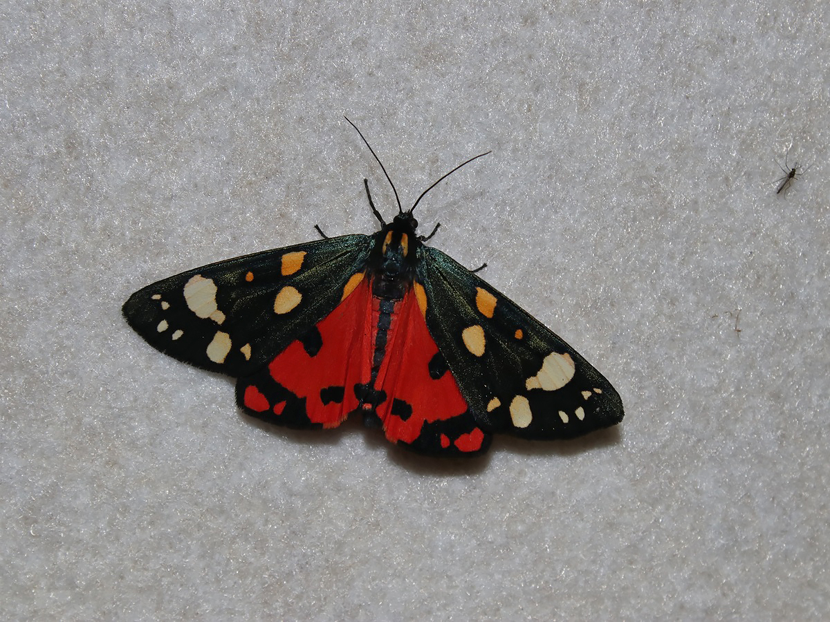Der Schönbär (Callimorpha dominula), der Schmetterling des Jahres 2010, hat schwärzlich glänzende Vorder- und kräftig rote Unterflügel mit weißen bzw. schwarzen Punkten. Die innerhalb Deutschlands im Süden häufigere Art ähnelt farblich grob dem Russischen Bären (Euplagia quadripunctaria).