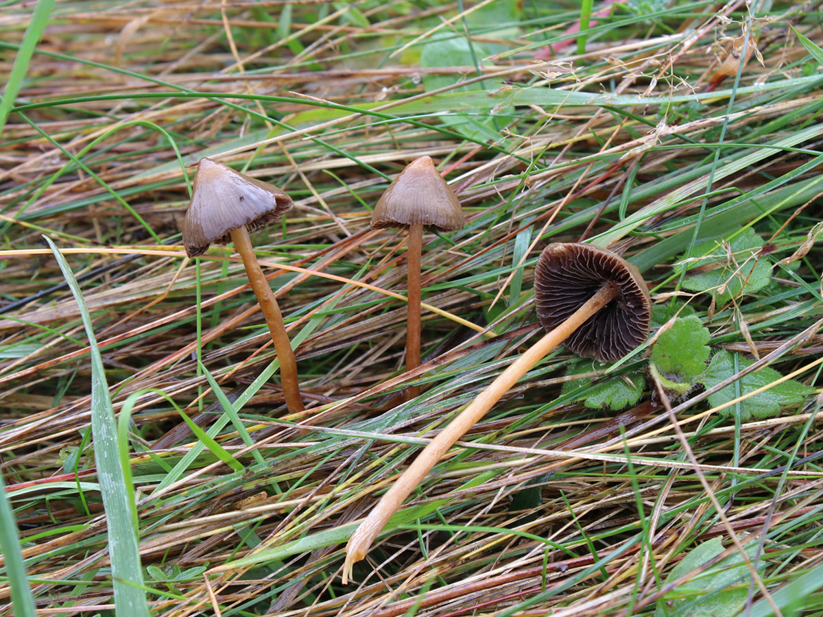 Der Spitzkegelige Kahlkopf (Psilocybe semilanceata) wächst auf mageren ungedüngten Wiesen, also typischen „Saftlingswiesen“. Die Art lässt sich durch den kegelig zugespitzten Kopf gut makroskopisch erkennen.