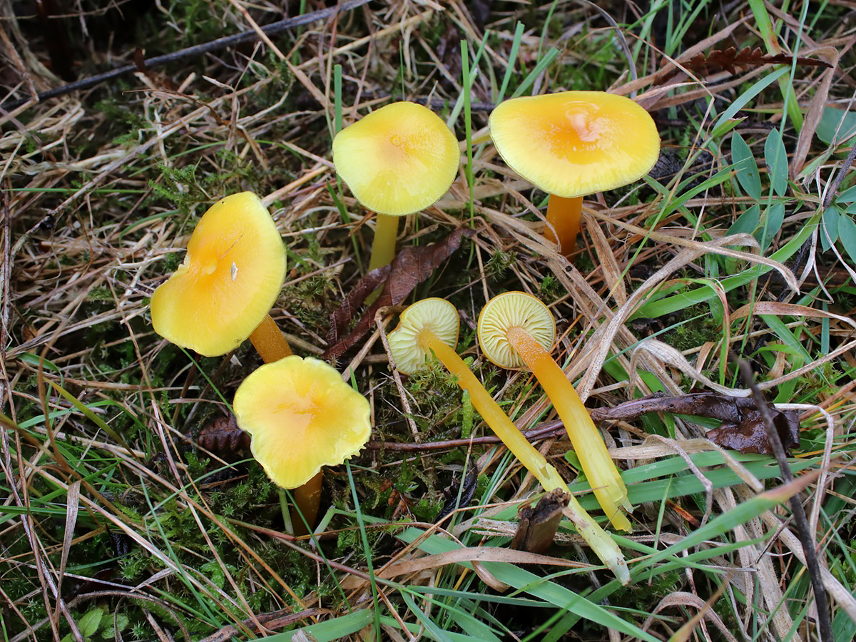 Der Stumpfe Saftling (Hygrocybe chlorophana) ist eine größere Saftlingsart, die zumeist gelblich gefärbt ist und angeheftete Lamellen hat. Letzteres unterscheidet diese Art vom Gebrechlichen Saftling (Hygrocybe ceracea).