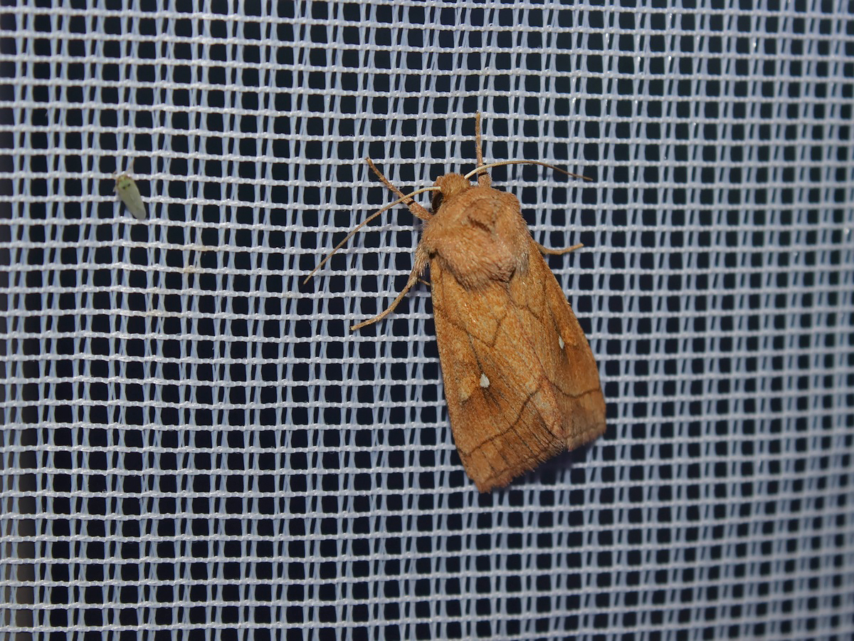 Die Weißfleck-Graseule (Mythima conigera) tritt eher lokal auf und bevorzugt feuchtere bis halbtrockene Standorte. Ähnlich sieht die Weißpunkt-Graseule (Mythimna albipuncta) aus, die aber einen etwas kleineren und runderen weißen Nierenfleck aufweist.