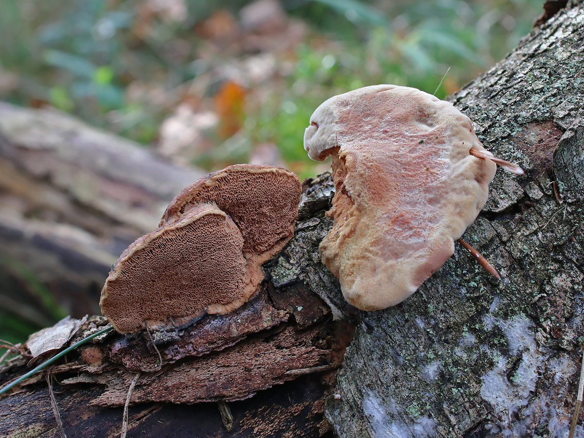 Der Zimtfarbene Weichporling (Hapalopilus nidulans) wächst an totem Laubholz. Bei dem recht weichfleischigen Porling handelt es sich um den einzigen in Deutschland vorkommenden giftigen Porling, der beim Verzehr das Polyporsäure-Syndrom auslöst. Wenn man Lauge auf die Fruchtkörper schmiert, färben sich alle Teile dieser Art violett.